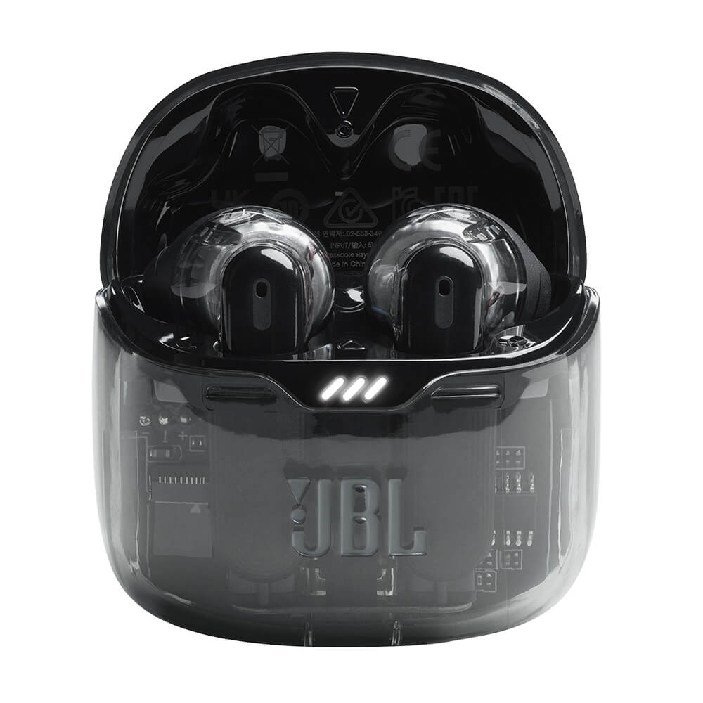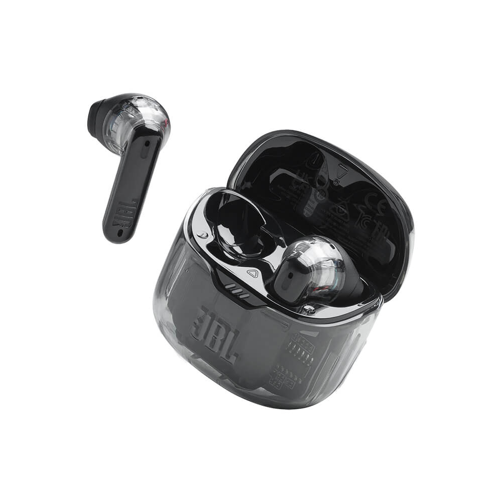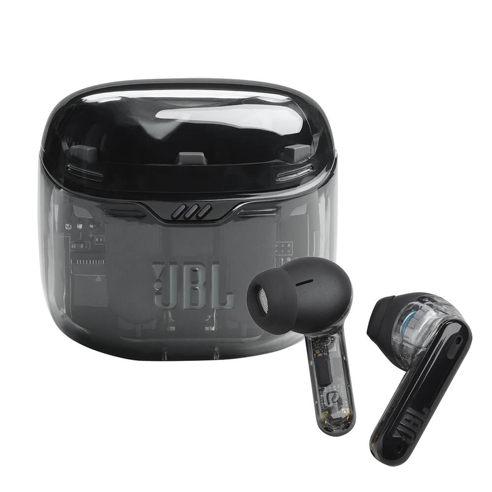 Take your day one song at a time with the JBL Tune Flex Noise Cancelling Wireless Earbuds that put up to 32 hours of playtime in your pocket. Now available in "black ghost" special edition!