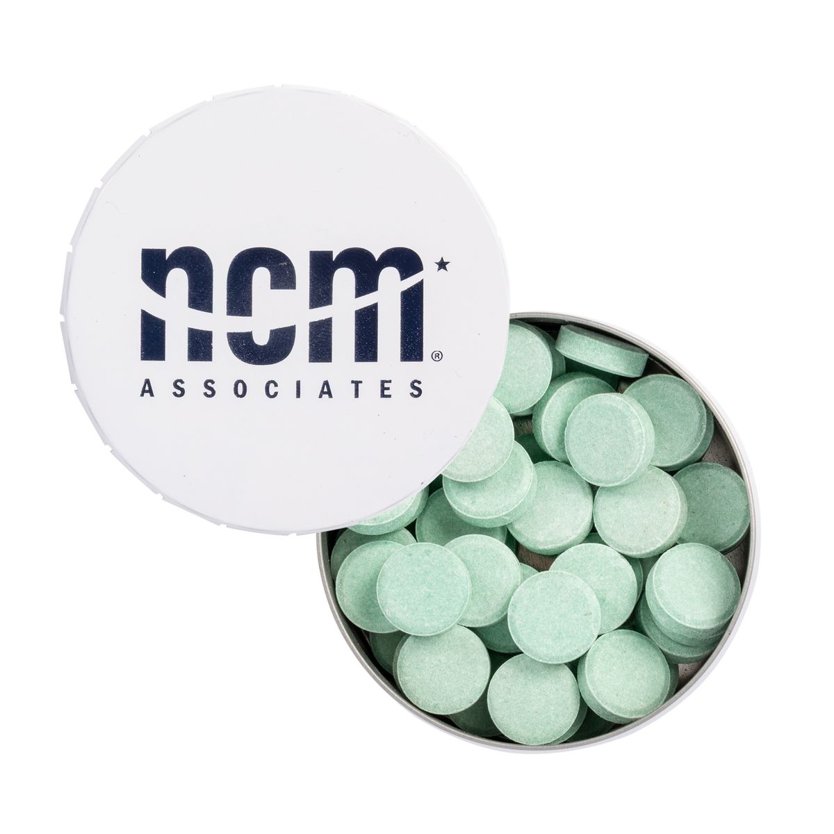 Freshness that clicks. This sleek, pocket-sized Large Click Tin delivers a satisfying snap and a burst of sugar-free flavor every time. With bold color options and custom imprint choices, it's a standout way to keep your brand top of mind—mint after mint. Large 2.25" diameter tin with a classic click-to-open lid. Choose from White, Black, or Silver tins. Filled with 0.70 oz of sugar-free mints. Mint flavor options: Peppermint, Spearmint, Cinnamon, Chocolate Peppermint, or Wintergreen. Imprint available in 1-color or full color digital print. Perfect for trade shows, giveaways, and client gifts.