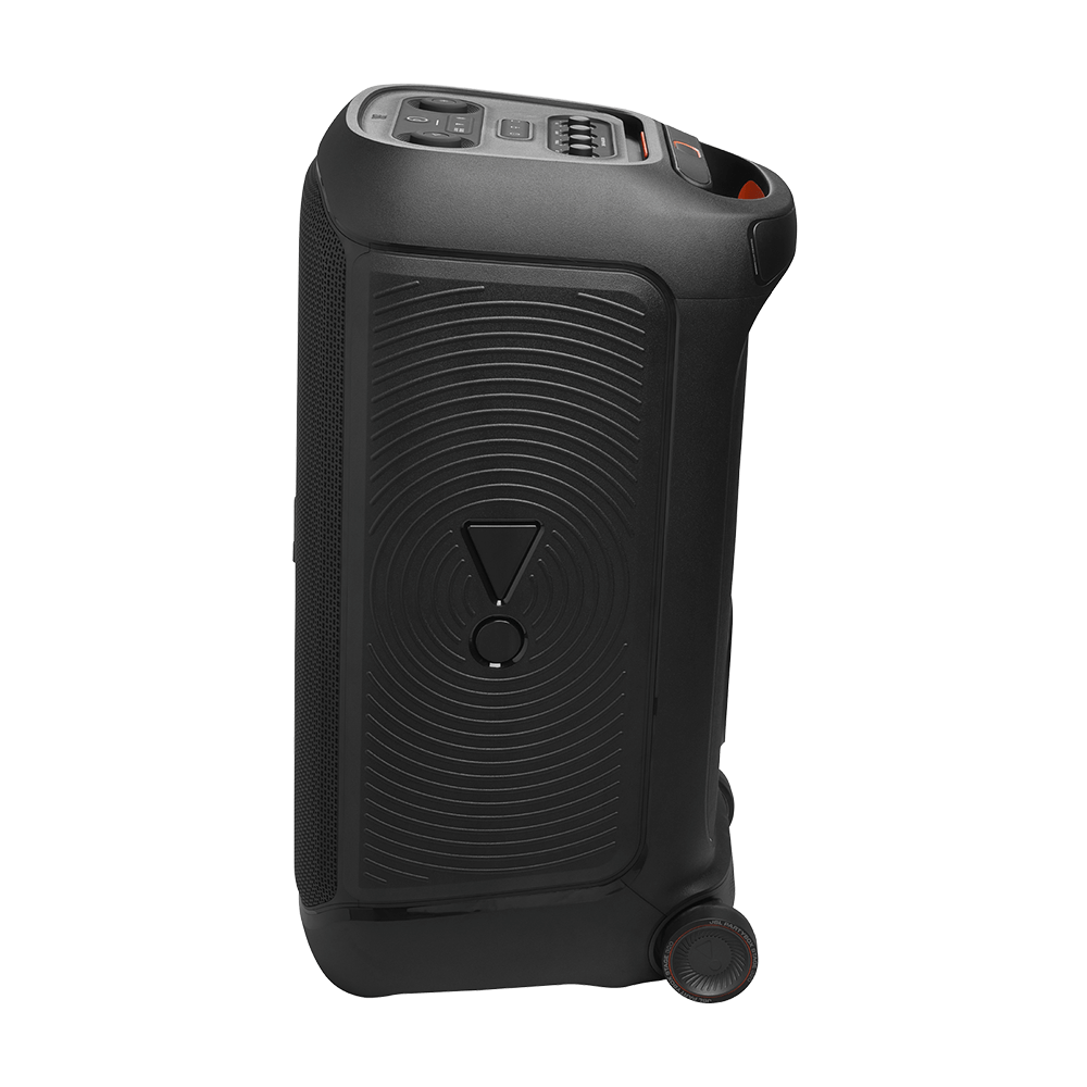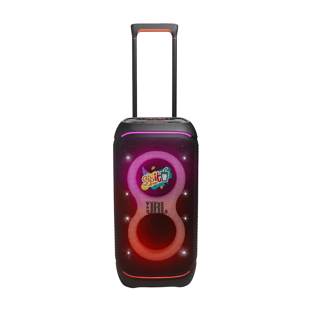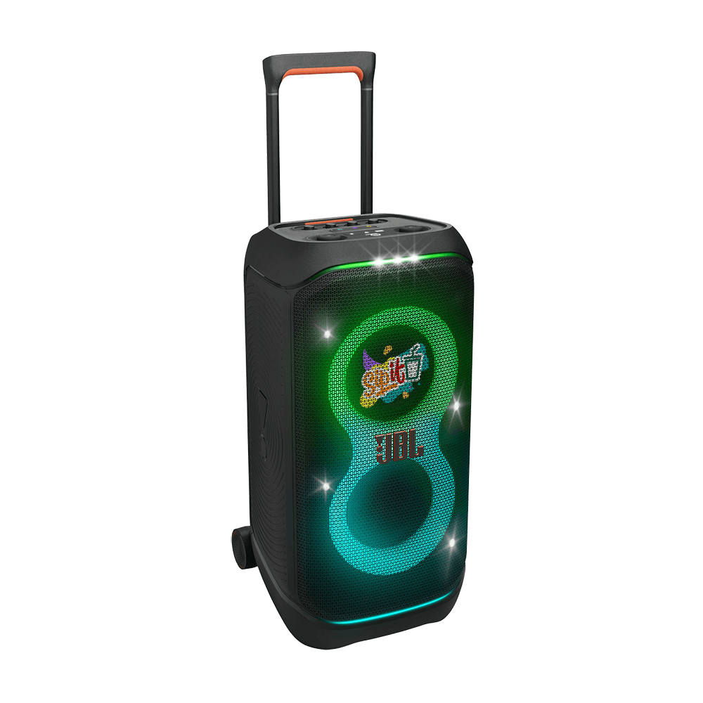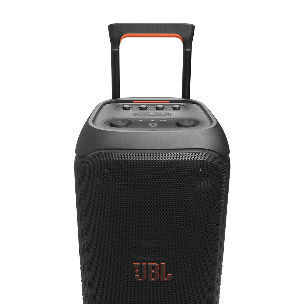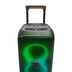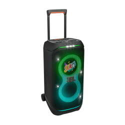 With the JBL PartyBox Stage 320, you can get the party started anytime, anywhere. Transform any space, inside or outdoors, into a dance floor. Powerful JBL Pro Sound and big thumping bass fill a wide soundstage and get the crowd moving, while their eyes are delighted by an adaptive lightshow of swirling starry lights, cool light trails, and amazing strobe effects synced to your beat. Use the mic and guitar inputs to show off your stage presence. You can steer the party's flow throughout the night with fun interactive party effects. The solid telescopic handle and wide, sturdy wheels mean you can roll the JBL PartyBox Stage 320 just about anywhere, and once you're there, the splash-proof construction means a little rain won't ruin the fun. Best of all, it delivers up to 18 hours of playtime